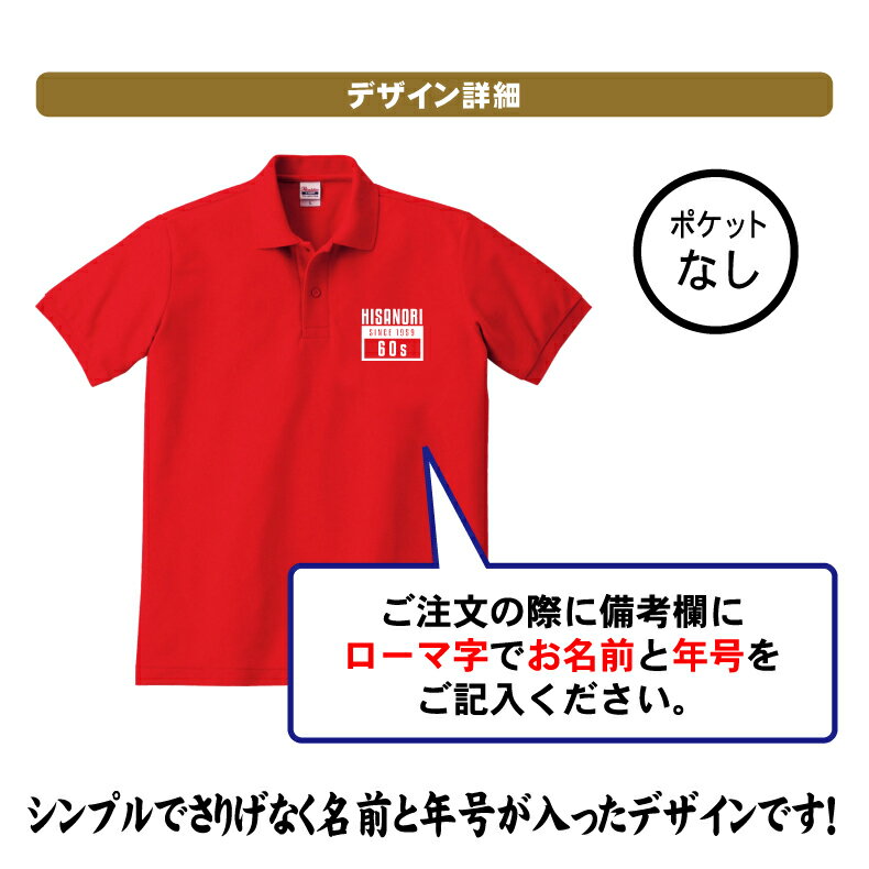 名入れ 還暦T/Cポロシャツ ポケットなし ボックスロゴデザイン 還暦祝い 男性 父 女性 母 両親 上司 友人 プレゼント 喜ばれる人気商品 売れ筋 2021 定番商品 141NVP 商品価格:3,740円 レビュー件数:44件 レビュー平均:4.68(5点満点) 楽天で購入 トップページへ