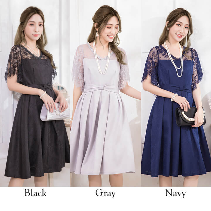 関連ワード パーティードレス 結婚式 ワンピース 大きいサイズ有 20代 30代 パーティドレス ミディアム ミディアムドレス 膝丈 膝下 エレガント 大人 ママ フォーマル レディース 二次会 演奏会 謝恩会 同窓会 レース ブラック 黒 グレー 灰 ネイビー 紺袖あり 半袖 レース袖 二の腕カバー yj188280 7号 9号 11号 13号 15号